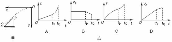 9.如下图甲所示,水平抛出的物体,抵达斜面上端P处时速度恰好沿着斜面方向,紧贴斜面PQ无摩擦滑下;图乙为物体沿x方向和y方向运动的位移-时间图象及速度-时间图象,其中可能正确的是
