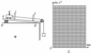 10.(10分)光电计时器是一种研究物体运动情况的常见仪器.当有物体从光电门通过时,光电计时器就可以显示物体的挡光时间.现利用如图甲所示装置探究物体的加速度与合外力、质量关系,其 NQ是水平桌面,PQ是一端带有滑轮的长木板,1、2是固定在木板上的两个光电门(与之连接的两个光电计时器没有画出).小车上固定着用于挡光的窄片K,测得其宽度为d,让小车从木板的顶端滑下,光电门各自连接的计时器显示窄片K的挡光时间分别为t1和t2.