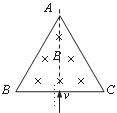 16.在一个边长为a的等边三角形区域内分布着磁感应强度为B的匀强磁强, 一质量为 m、电荷量为q的带电粒子从BC边的中点垂直BC方向射入磁场中, 如图所示, 为使该粒子能从AB边(或AC边)射出, 则带电粒子的初速度v必须大于 .
