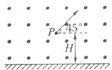 (2)若某时刻微粒运动到场中距地面高度为H的P点时,速度与水平方向成45°角,如上图所示,则该微粒至少须经多长时间运动到距地面的最高点?最高点距地面多高?