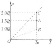 36.(8分)(选修3―3)某同学利用DIS实验系统研究一定质量的理想气体的状态变化,在实验后计算机屏幕上显示了如下P―T图像(实线部分),如下图所示,已知在A状态气体体积为
