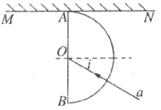 射向半圆玻璃砖的圆心O,结果在水平屏幕MN上出现两个光斑。(