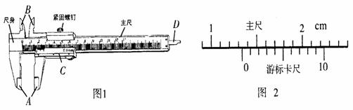 (1)用如下图1所示的游标卡尺测量圆形钢管内径的操作方法是:把 (填“A”、“B”、“C”或“D”)放入到圆形钢管内,并尽量把它们拉开到最大位置.某同学用图l2所示的游标卡尺测量圆形钢管内径时的测量结果如图2所示,则该圆形钢管的内径是 cm.
