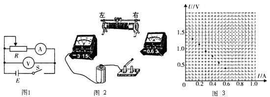 (3)将实验测得的数据标在如图3所示的坐标图中,请作出U―I图线,由此求得待测电池的电动势E= V,内电阻r= Ω。(结果保留三位有效数字)