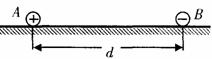 (2)如下图所示,在绝缘的光滑水平面上有A、B两个点电荷,A带正电,B带负电,电量都是q,它们之间的距离为d.为使两电荷在电场力作用下都处于静止状态,必须在水平方向加一个匀强电场.求:两电荷都处于静止状态时,AB连线的中点处场强大小和方向.(已知静电力常数为k)