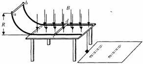 19.(16分)如下图所示,电阻不计的两光滑金属导轨相距L放在水平绝缘桌面上,半径为R的