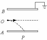 21.如下图所示,在真空室中有一水平放置的不带电平行板电容器,板间距离为d,电容为C,上板B接地。现有大量质量均为m、带电量均为q的小油滴,以相同的初速度持续不断地从两板正中间沿图中虚线所示方向射入,第一滴油滴正好落到下板A的正中央P点。如果能落到A板的油滴仅有N滴,且第N+1滴油滴刚好能飞离电场,假定落到A板的油滴的电量能被板全部吸收,不考虑油滴间的相互作用,重力加速度为g,则 ( )