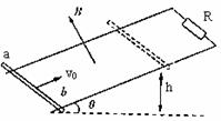 20.如图所示,一光滑平行金属轨道平面与水平面成θ角,两轨道上端用一电阻R相连,该装置处于匀强磁场中,磁场方向垂直轨道平面向上。质量为m的金属杆ab,以初速度v0从轨道底端向上滑行,滑行到某一高度h后又返回到底端。若运动过程中,金属杆始终保持与导轨垂直且接触良好,且轨道与金属杆的电阻均忽略不计,则 ( )