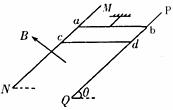 21.如图所示,MN、PQ是与水平面成θ角的两条平行光滑且足够长的金属导轨,其电阻忽略不计。空间存在着垂直于轨道平面向上的匀强磁场,磁感应强度大小为B。导体棒ab、cd垂直于导轨放置,且与轨道接触良好,每根导体棒的质量均为m,电阻均为r,轨道宽度为L。与导轨平行的绝缘细线一端固定,另一端与ab棒中点连接,细线承受的最大拉力Tm=2mgsinθ。今将cd棒由静止释放,则细线被拉断时,cd棒的