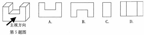 5、10年第5题: 左下图为主视方向的几何体,它的俯视图是( )