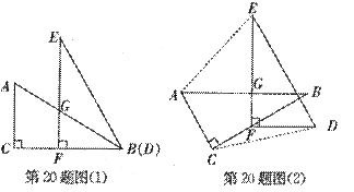 20、10年第20题:已知两个全等的直角三角形纸片ABC、DEF,如图(1)放置,点B、D重合,点F在BC上,AB与EF交于点G.∠C=∠EFB=90°,∠E=∠ABC=30°,AB=DE=4.