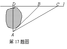 17、11年第17题:如图,小明家在A处,门前有一口池塘,隔着池塘有一条公路l,AB是A到l的小路. 现新修一条路AC到公路l. 小明测量出∠ACD=30º,∠ABD=45º,BC=50m. 请你帮小明计算他家到公路l的距离AD的长度(精确到0.1m;参考数据: