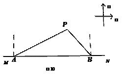 如图10, 在东西方向的海岸线MN上有A、B两艘船,均收到已触礁搁浅的船P的求救信号,已知船P在船A的北偏东58°方向,船P在船B的北偏西35°方向,AP的距离为30海里.
