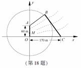 (本小题满分16分)如图,为保护河上古桥OA,规划建一座新桥BC,同时设立一个圆形保护区.规划要求:新桥BC与河岸AB垂直;保护区的边界为圆心M在线段OA上并与BC相切的圆,且古桥两端O和A到该圆上任意一点的距离均不少于80m.经测量,点A位于点O正北方向60m处,点C位于点O正东方向170m处(OC为河岸),