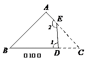 如图,在三角形纸片ABC中剪去∠C得到四边形ABDE,且∠1+∠2=230°.