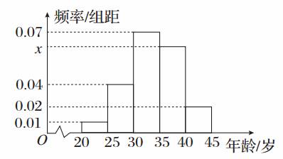 (1)求图中x的值并根据频率分布直方图估计这500名志愿者中年龄在[35,40)岁的人数;