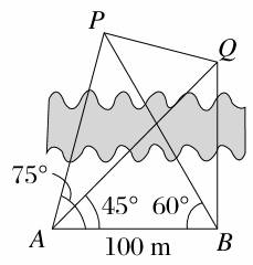 解:在△PAB中,∠APB=180°-(75°+60°)=45°,