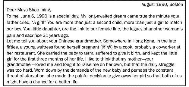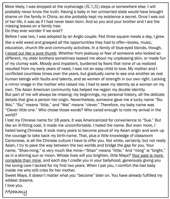 70. By “Your past is more complete than mine,” Mommy means ________.