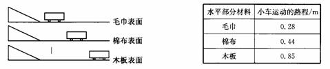 9.如图所示,让小车自斜面同一高度由静止开始滑下,记下小车在不同的材料表面水平运动的距离(见下表).分析实
