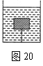 28.如图20所示,容器中装有水,水中有一个木块被细线系着,已知水重200N,水深为0.5m,木块的体积为4dm3,木块的密度为0.6×103kg/m3,试求:(1)水对容器底面的压强是多少?木块受到的浮力是多大?(2)若绳子断了,最终木块漂浮在水面上时,所受的浮力为多大? 此时水对容器底的压强比第(1)问中的大还是小? (g取10N/kg)