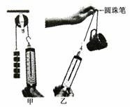 (09·吉林)课堂上,小宇利用图甲所示的装置完成了“测量定滑轮的机械效率”的实验,记录的数据如下:钩码重2.5N、拉力大小为2.6N。回到家里,他又用图16乙所示的装置进行测量,记录的数据如下:茶杯重2.5N、拉力大小为3.2N。请你完成下面的表格。
