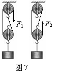 21.小明用两个相同的滑轮组成不同的滑轮组(如图7所示),分别将同一物体匀速提高到相同高度,滑轮组的机械效率分别为η1、η2。下列关系