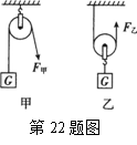 (10·无锡)22.如图所示,用定滑轮和动滑轮分别将质量相同的甲、乙两物体匀速提升相同的高度,不计绳重与摩擦,且动滑轮重G动小于乙物体的物重G,则所用的拉力F甲 F乙(选填“>”、“<”或“=”,下同),其机械效率η甲 η乙.