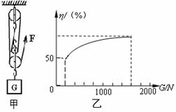 解:(1)由乙图可知:当G=200N时,η=50%……………………………………(1分)