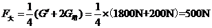 (2)由乙图可知:当G/=1800N时,绳子刚好被拉断 ………………………(1分)