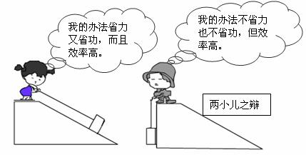 17.(11·江西)如图所示,两小儿之辩,关于机械省力,省功以及机械效率的辩论,你支持哪一方的说法?不支持另外一方的原因是什么?