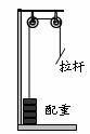 22.(11·盐城)小明健身用的拉力器结构如图所示.他用250N的拉力向下拉动拉杆,使20kg的配重块在 2s内匀速升高40cm.不计拉杆和绳的重力,g取10N/kg.求: