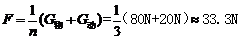 30.(11·龙岩)如图,动滑轮重20N,物体重80N,不计绳重和摩擦: