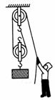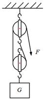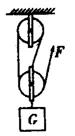 28.(11·张家界)在大型场馆和高楼建设工地上,常用起重机吊起建材。起重机掉吊臂上的滑轮组是由一个动滑轮和两个定滑轮组成,其结构简图如图所示,钢丝绳拉力F由电动机提供,大小为2×104N,起重机在60s内将重为5.4×104N的建材匀速提高了12m。试求: