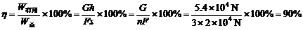 (2)W有用=Gh=5.4×104×12m=6.48×105J