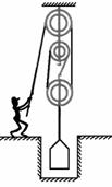 21.(11·德阳)今年六月,长江中下游部分地区发生严重干旱。在抗旱中某工人利用如图所示滑轮组从井中提水。某次操作中,工人在绳端所用拉力F=500N,在t=60s内将重为800N的水匀速提升6m。求这段时间内: