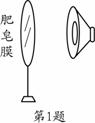 (10·徐州)1.在探究人耳怎样听到声音时,可以用肥皂膜模拟人耳的鼓膜.如图所示,当喇叭发声时,肥皂膜将