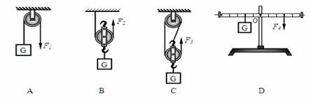 5.(11·荆门、荆州)用下列简单机械,使重力同为G的物体都保持静止状态,不计摩擦、机械自重及绳的重量,其中用最小的是