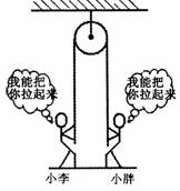 16.(11·杭州)小李的质量为50kg,可以举起80kg的杠铃;小胖的质量为70kg,可以举起60kg的杠铃。他们两人通过如图所示的装置来比赛,双方都竭尽全力,看谁能把对方拉起来。比赛结果应是