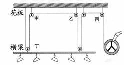 18.(11·温州)如图为家庭手摇升降晾衣架结构图,当顺时针摇动手柄时,横梁上升。下列滑轮属于动滑轮的是