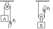 6.(2012莆田)如图所示,物体A和B所受重力均为30N,滑轮重、绳重和摩擦均不计。当用力F1和F2分别匀速提升A和B时,力F1的大小为___牛,力F2的大小为___牛。