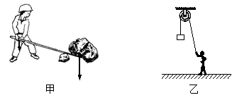 9.(2013成都)如图甲所示,小明在用杠杆撬一块大石头,他使用的是____杠杆(选填“省力”、“费力”或“等臂”)。如图乙所示,使用定滑轮可以______(选填“省力”、“省距离”或“改变动力方向”)。