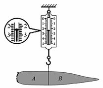 12.(11·德州)刘佳的妈妈从超市买回一袋胡萝卜,刘佳捡了一个最大的用细线系好挂在弹簧测力计上(如图所示)。胡萝卜重为 N,如果在系线处将胡萝卜切成两段,则GA_______GB(选填“大于”、“小于”或“等于”)