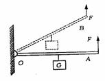 20.(11·烟台)如图所示,轻质杠杆OA中点悬挂重为60N的物体,在A端施加一竖直向上的力F,杠杆在水平位置平衡,则力F的大小是_______________,保持F的方向不变,将杠杆从A位置匀速提升到B位置的过程中,力F将_____________(选填“变大”、“变小”或“不变”).
