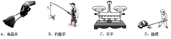 A.食品夹 B.钓鱼竿 C.天平 D.撬棍