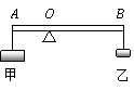 32.(2013凉山)如图所示,O为杠杆AB的支点,OA:OB=2:3,物块甲和乙分别挂在A、B端,杠杆恰好平衡。已知甲、乙的体积之比是2:1。则甲、乙密度之比是