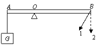 36.(2013巴中)如图所示,杠杆始终在水平位置平衡,作用在杠杆B点的力在位置1时为F1,在位置2时为F2。则F1与F2的大小关系是
