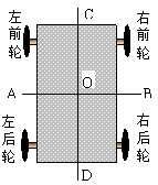43.(2013宁波)CCTV科教频道曾报道:有一辆小车载人后停在水平放置的地磅上时,左前轮、右前轮、左后轮、右后轮对地磅的压力分别为4750N、4980N、4040N、3960N。假设该小车四个轮子的轴心围成一个长方形,O为几何中心,AB、CD为两条对称轴,如图所示。若再在车上放一重物,能使整辆车所受重力的作用线通过O点,则该重物的重心应落在
