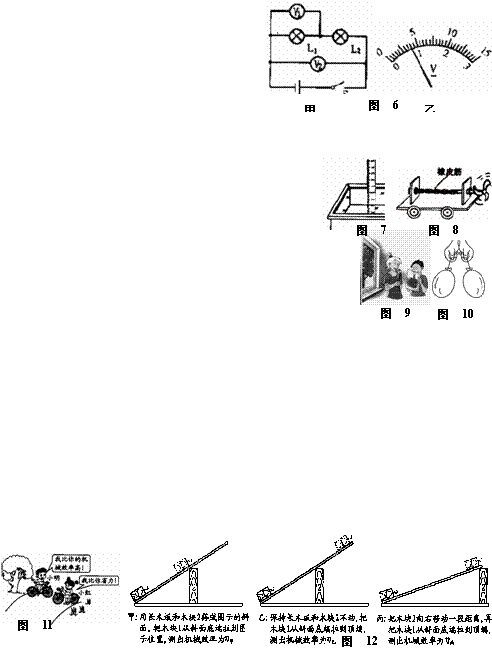 的指针所指的位置如图6乙所示,则L1两端的电压是 V,L2两端的电压是 V。