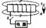 (11·雅安15.如图所示,通电螺线管的左端为S极,则