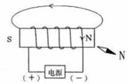 19.(11·东营)在下图中,根据通电螺线管上方小磁针N极的指向,标出电源的“+”“—”极。